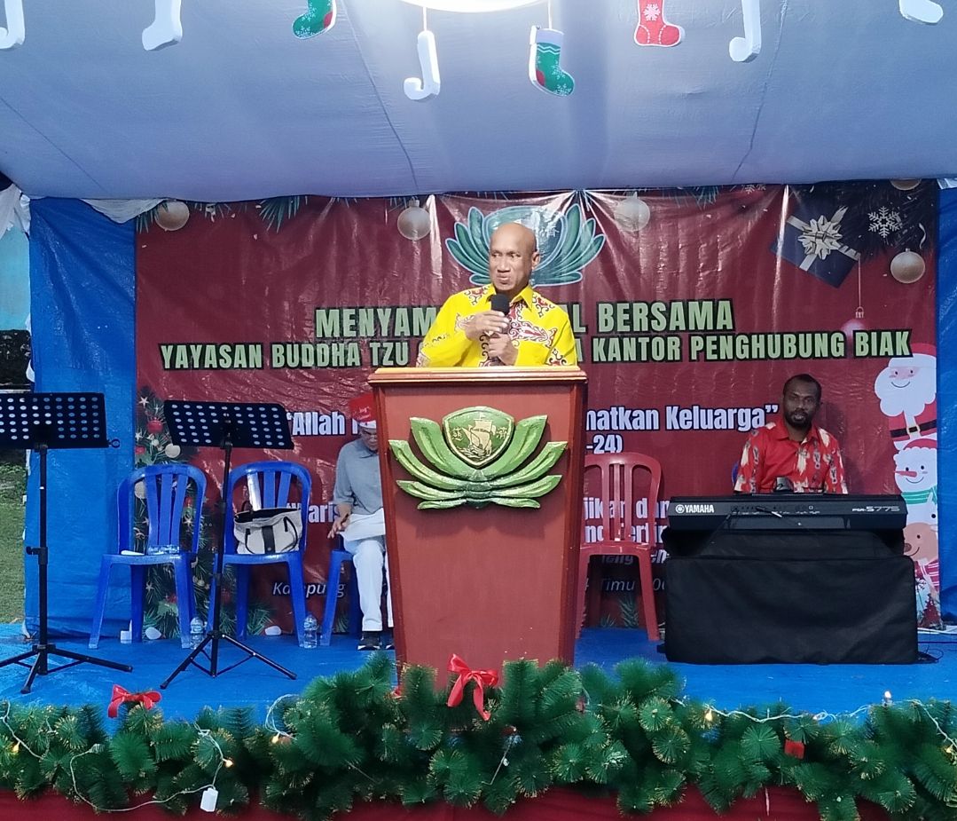 KBRN,Biak: Yayasan Buddha Tzu Chi Indonesia Kantor Penghubung Biak.menggelar perayaan Natal yang dipusatkan di lapangan sepak.bola Mandon Distrik Biak Timur,Sabtu (6/12/2025)